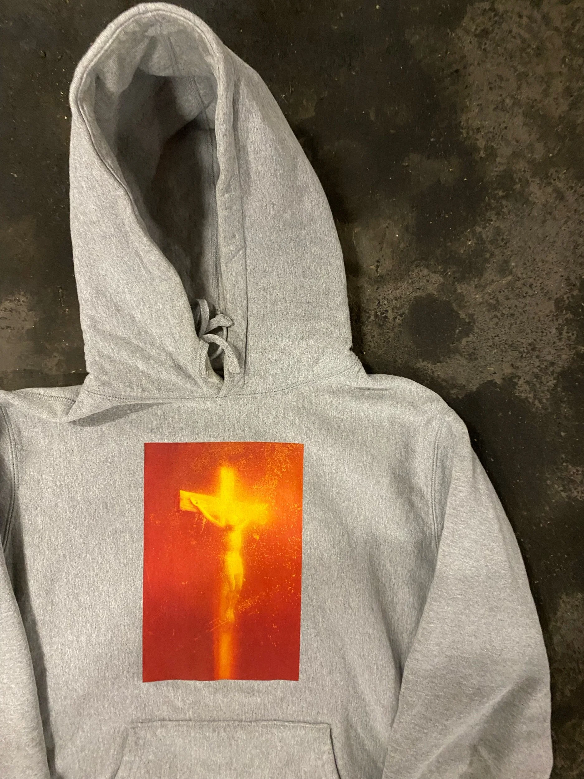 Description: Supreme x Andres Serrano Piss Christ Hooded Sweatshirt Grey FW17
